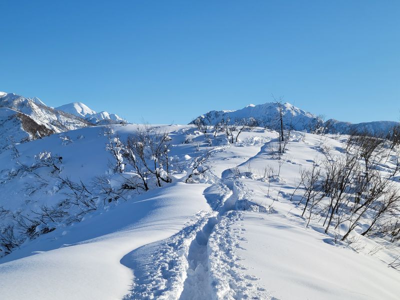 皆さん、カンジキなどを着けていたので壺足は厳しいかもしれないと思っていた。あまりにズボズボぬかるようなら途中で引き返そうと思っていたが、しっかりとパッキングされており問題なく山頂まで至れた。あまり水を飲みたい気分ではなかったが、愛想に飲んだ。なんというか、開き直りながら淡々と登ったのでさして疲れず、体重など減る由もなかった。