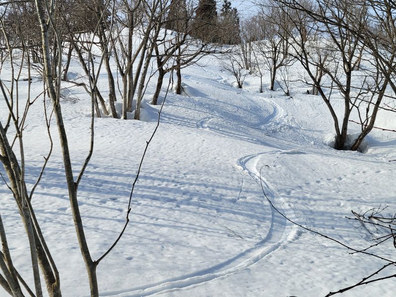 あとは、小さな小山は階段斜登行で登り返し、最後の斜面を滑走し終了。