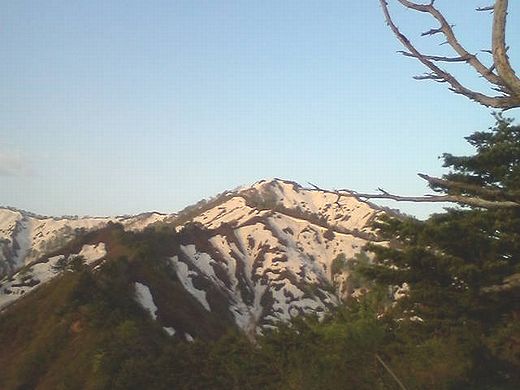 太郎助山から百字ヶ岳にかけてもほぼ雪は着いており、二箇所ほど薮を歩いたのみで予定より少し遅れ気味ではあったが、百字ヶ岳に到着した。百字ヶ岳から桧岳への稜線も昨年の5月連休時よりも雪は着いており、つい気持ちが駆られてしまう。