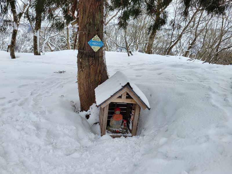 私が歩いたコー社まったく人が居なかったが、メインルートを通ってきた人は何人かいたようだ。かえりは、別なルートを取りたかったので、一個だけあったとレースを追った。市営スキー場のロッジに着き、そのまま車道を歩いて元に戻った。