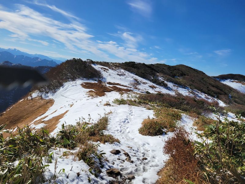 雪があるのは他者の山行き記録などで知っていたが、思ったより少なく歩きやすかった。