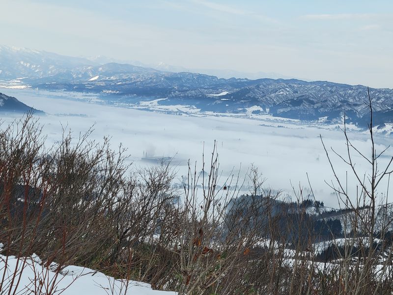 前日の踏み跡が著しく、ほぼ難儀はしないで山頂に着いた。画像もさして撮りこみたいものはなかったが、小出平野にわずかに雲海が残っていたのでそれを撮り込んだ。