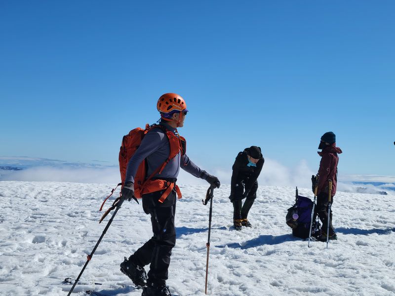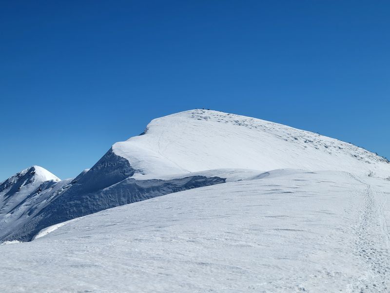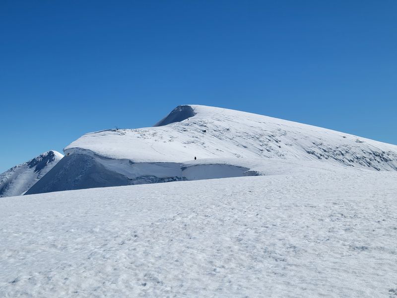 ほとんどの方が登山である。時折、スキートレースがあるので私達のほか数人がスキーヤーのようだ。