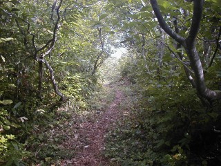 あとは、眺望もたまに見える程度で、ブナの曲がった林をひたすら歩いていく。